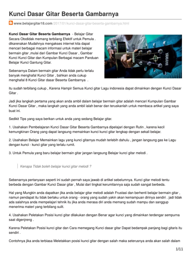 Kunci Gitar Belajar Cara Bermain Gitar Untuk Pemula