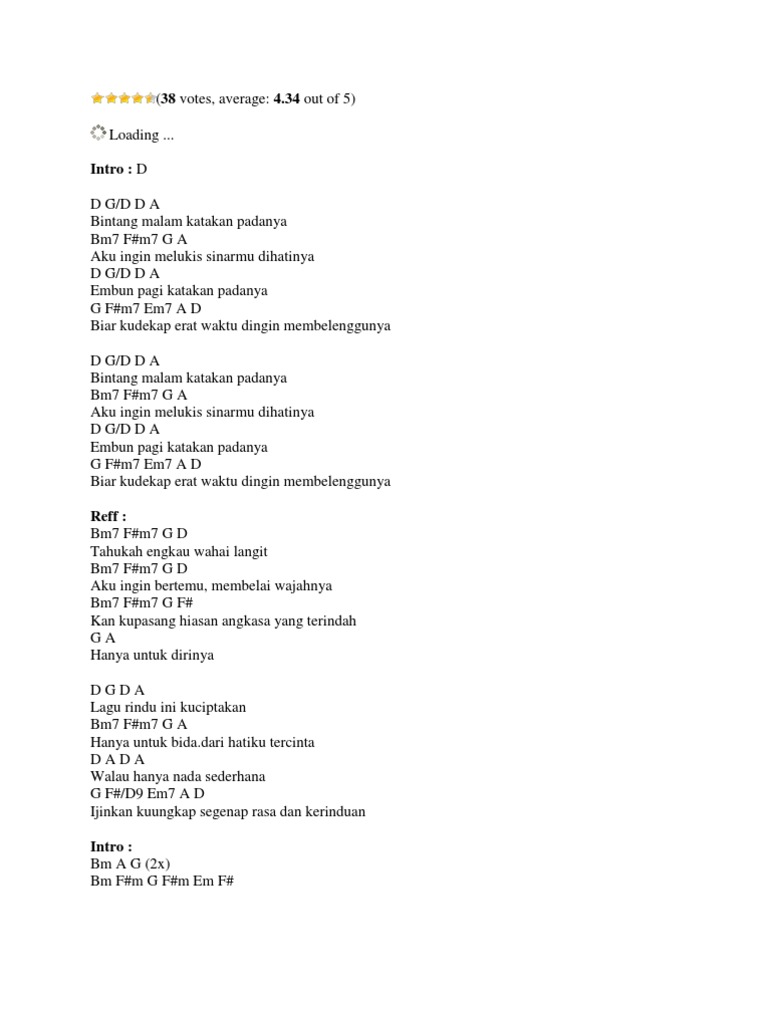 Lirik Lagu Dan Chord Kunci Gitar Ukulele Hanya Rindu