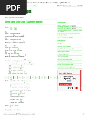 Kunci Gitar Sonia Kau Sebut Namaku Chord Dasar Kunci Gitar