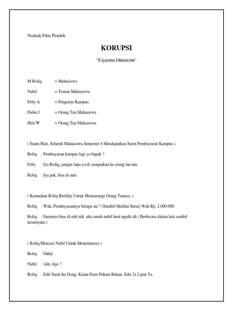 Nina nina berbicara kepada antonio dengan bahasa isyarat kalau dia bersedia, setelah selesai dia tersenyum kepada antonio. 14 contoh teks naskah drama : Mulai dari naskah drama pendek, naskah drama romatis, naskah drama komedi, naskah drama dari persahabatan, naskah drama rakyat, naskah drama lucu, naskah drama 6 orang, naskah drama musical, contoh naskah legenda seperti timun mas, malin kundang dan lain sebagainya. Naskah ini saya tulis sendiri. Mading sekolah print ad (display poster film)b.